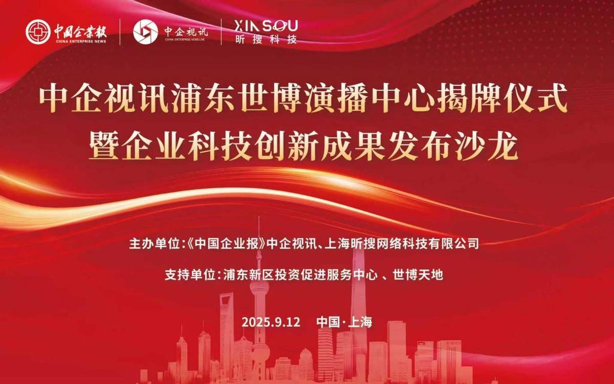 2025年9月12日下午,“智汇浦东·视创未来——中企视讯浦东世博演播中心揭牌仪式暨企业科技创新成果发布沙龙”在浦东世博天地隆重举行。本次活动由《中国企业报》中企视讯与上海昕搜网络科技有限公司联合主办,浦东新区投资促进服务中心和世博天地支持,汇聚了政府代表、企业领袖、专家学者等百余名嘉宾,共同见证这一产业经济生态型全媒体智库平台的启航。